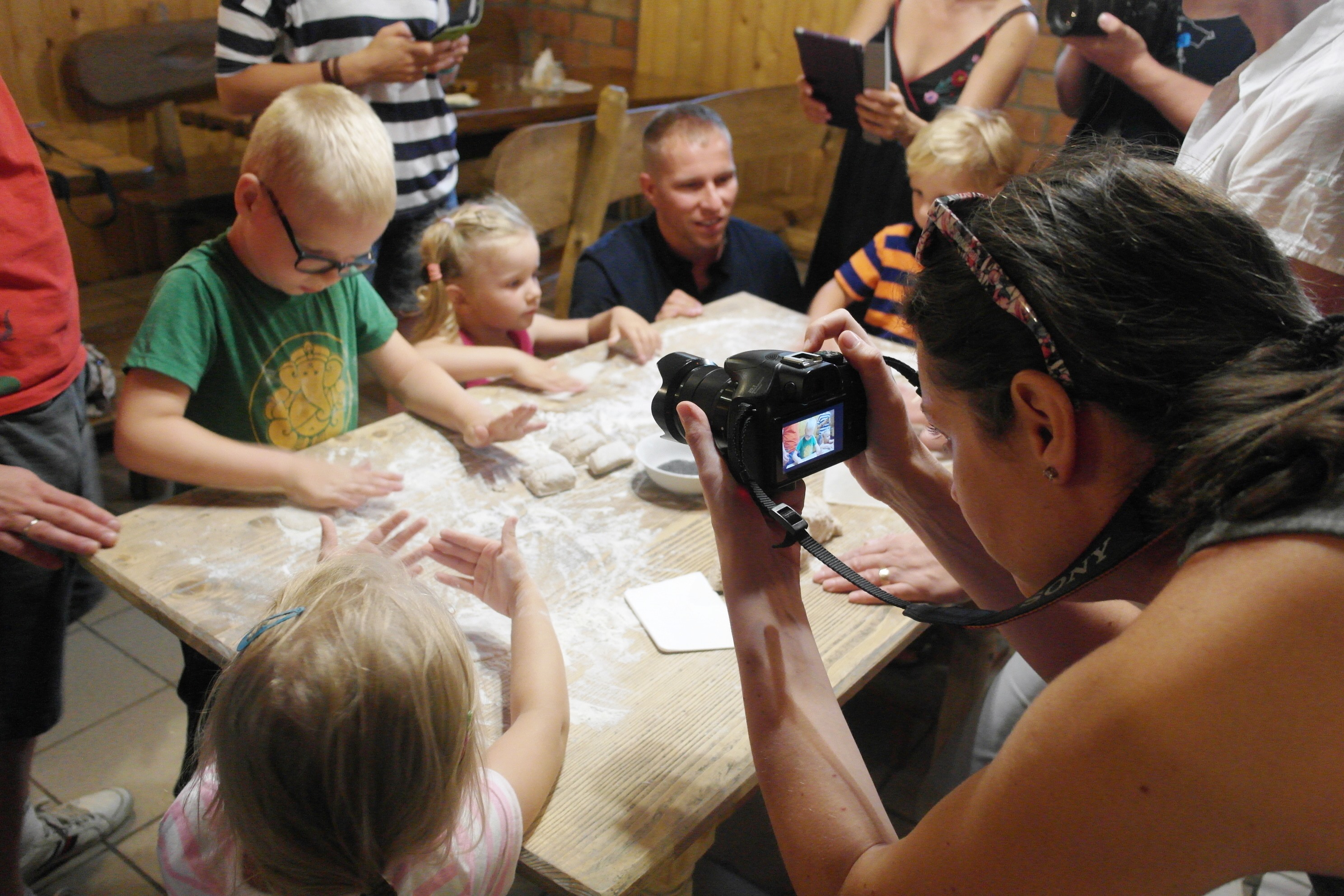Ostatnim miejscem, które odwiedziliśmy tego dnia była Chlebowa Chata w Górkach Wielkich. Po raz kolejny nie tylko dzieci były zachwycone - w zaplanowanych warsztatach robienia przepysznych podpłomyków z zapałem brali udział i rodzice małych podróżników.