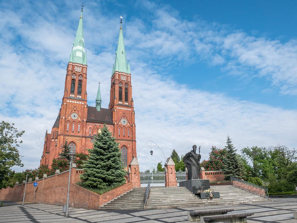 Rybnik to jedno z najbardziej rowerowych miast w województwie śląskim. Dobre drogi rowerowe, świetna sieć szlaków, a także mnóstwo terenów zielonych sprawia, że to fantastyczne miejsce dla fanów dwóch kółek. Trasa prowadzi obok Bazyliki św. Antoniego Padewskiego, przed którą stoi pomnik Jana Pawła II.
