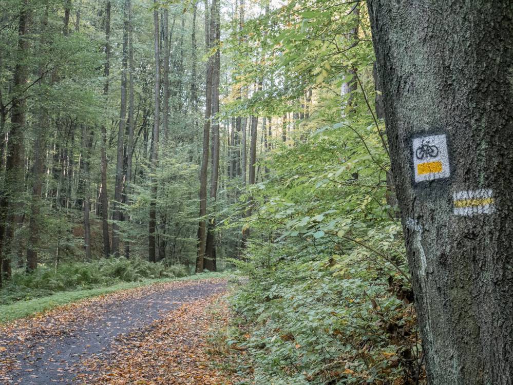 Żółty szlak rowerowy nr 323 Pszów - Jankowice, Szlak Pielgrzymkowy, Las Królewiok, fot. Damian Berłowski - roweremposlasku.pl