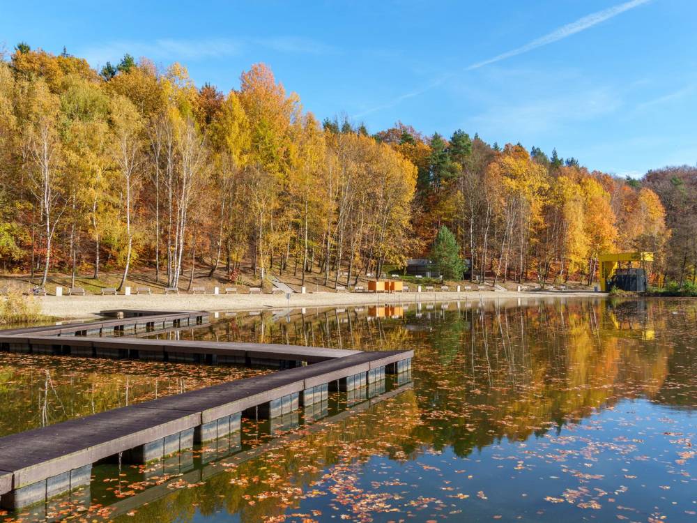 Najciekawszym miejscem na trasie jest bez wątpienia Ośrodek Rekreacyjny „Balaton”, zajmujący ponad 50 hektarów powierzchni. To popularne miejsce wypoczynku z piaszczystą plażą, strzeżonym kąpieliskiem, wodnym placem zabaw i wypożyczalnią sprzętu wodnego. Kolejną atrakcją są „5 pomnikowych dębów” rosnące przy leśnej ścieżce w Lesie Miejskim – stare, okazałe drzewa z ławeczką i tablicą informacyjną, idealne na chwilę odpoczynku w cieniu natury.