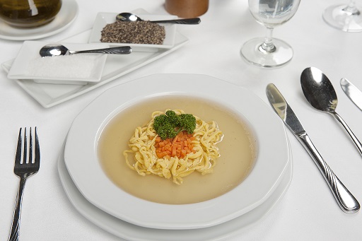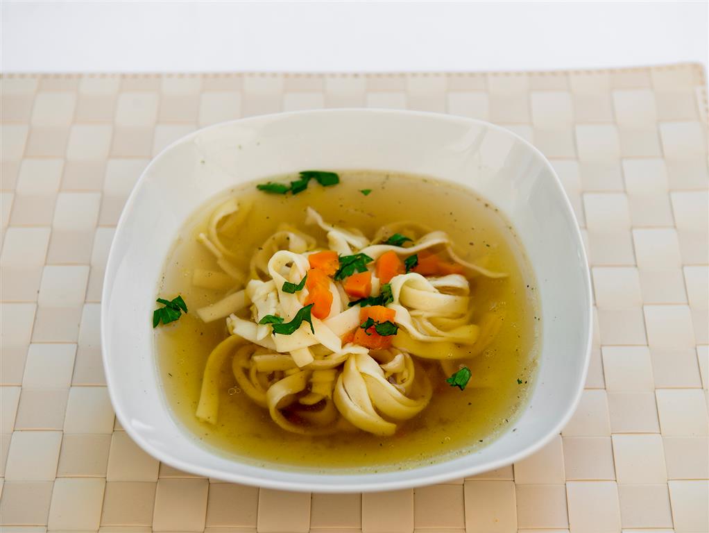 Mięso umyć, włożyć do garnka, zalać wodą i dodać warzywa oraz przyprawy, doprowadzić wodę do wrzenia, gotować na małym ogniu około 2 godziny. Makaron ugotować.