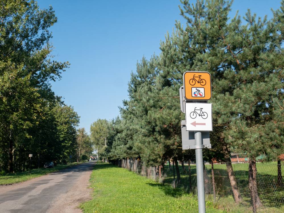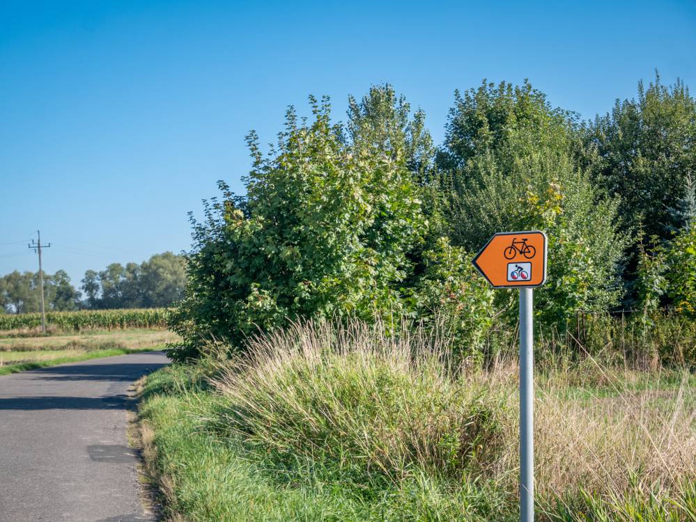 Udostępnienie Odry i Olzy to szlak, na którym występują znaki typu R-4, czyli pomarańczowe tabliczki z czarnym rowerem i logo szlaku.